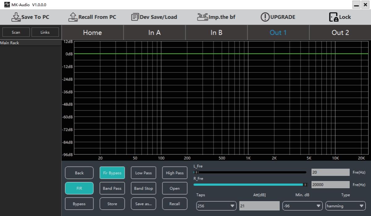 Input Input and output equalizer setting, HF & LF Bypass,FIR